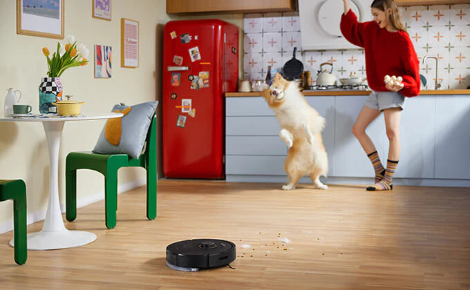 using Roborock's latest DuoRoller Brush technology and thanks to its exceptional 5500 Pa suction power, the Q5 Pro effectively removes dirt from a variety of floor types and achieves a deeper clean on carpets, improving the level of hair collection while ensuring less tangling. It is an ideal choice for families with pets.